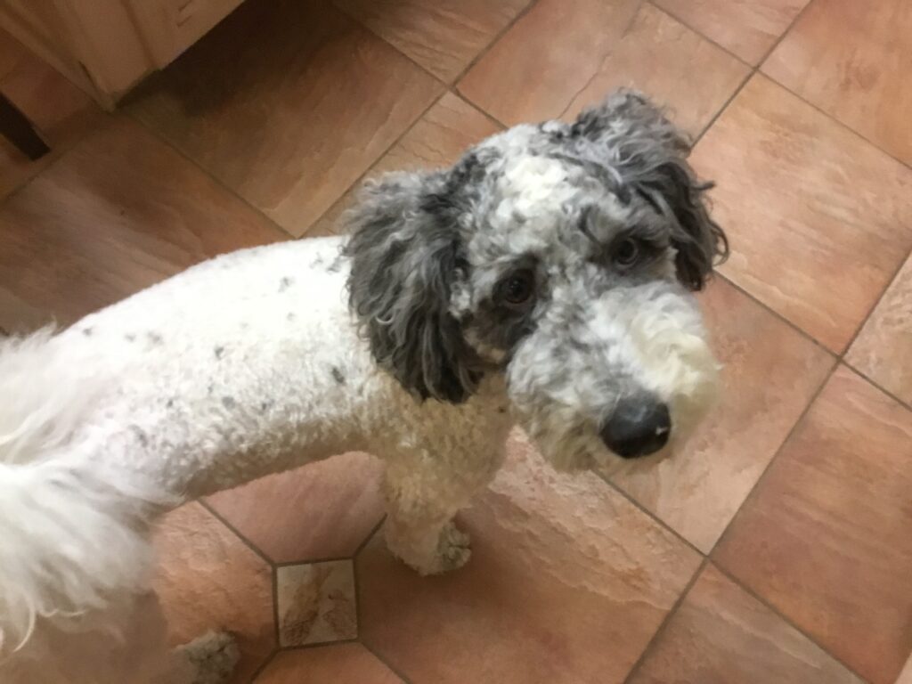 “Howdy! I’m Arlo the Whoodle. I’m super fun and rambunctious. This is me after my mom took me for a haircut but instead I got a shave! My big sisters hate it, but I think I look super cool.”