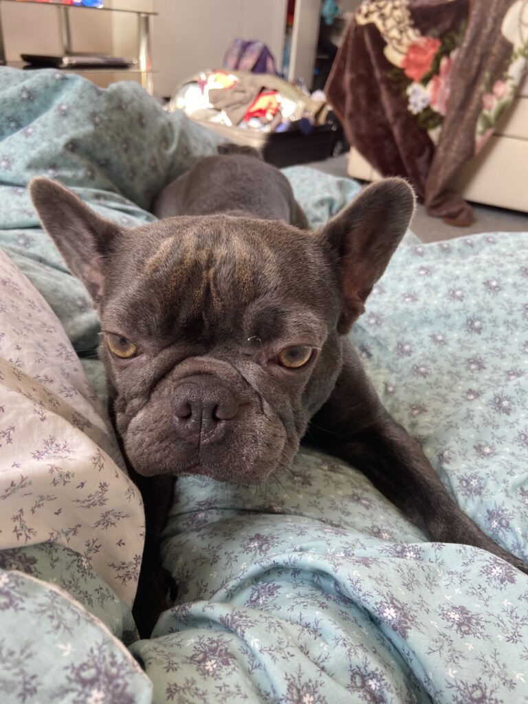 “Hello! I’m Lucie the French Bulldog! I’m super funny and like to run around and sneeze like crazy. My big sister and brothers always send my bad photos on their cousin groupchat!”