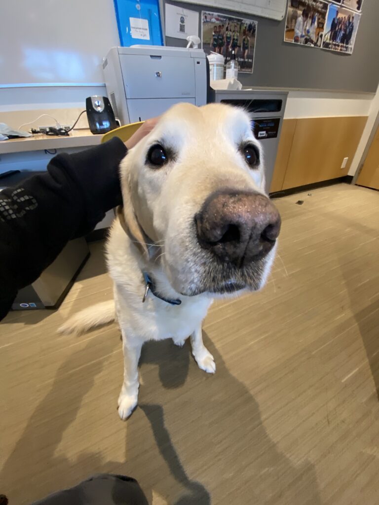 “Hey there, I’m Eede the Service dog at West Point Grey Academy! I’m a Labrador Retriever and I’m usually in the learning commons. Feel free to drop by for a pet!”